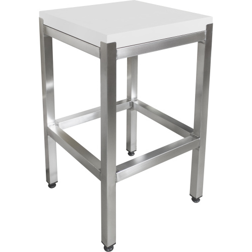 Модель оснащена ножками, регулирующимися по высоте. Каркас выполнен из квадратной трубы 40х40 мм из нержавеющей стали AISI 304, столешница - из полипропилена. толщиной 50мм