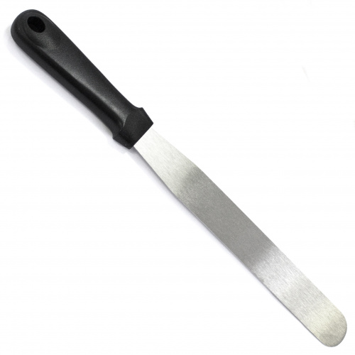 Нержавеющая сталь, ручка пластик. Общая длина 33,5 см рабочая часть 21х3,2см