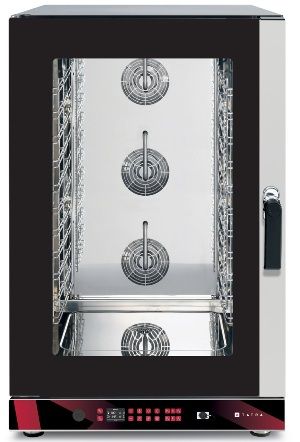 817х780х1340 мм, 400В, 15,8 кВт, 12 уровней GN1/1- 600х400, электронная п/у, инжекторное пароувлажнение, макс. температура 260С, 3 вентилятора, 5 скоростей вращения вентиляторов, реверс, автоматическая мойка, 100 программ, 4 этапа приготовления для каждой программы + предварительный нагрев, термощуп в комплекте, USB. Пароконвектомат оснащен электронной панелью управления c 2,4" LCD экраном, при помощи которой можно выставлять время приготовления и температуру, регулировать уровень пароувлажнения, задавать параметры термощупа, скорость вращения вентиляторов.Предусмотрены функции предварительного нагрева, быстрого охлаждения камеры, приготовления по Delta T, мультитаймера, приготовления с отложенным запуском и расстойки.Оборудование работает от сети 400В, потребляемая мощность 15,8 кВт.Максимальная температура рабочей камеры 260 C. Ручные режимы приготовления: конвекция 30-260С, конвекция+пар 30-230С, приготовление на пару 35-130С.3 программы автоматической мойки.