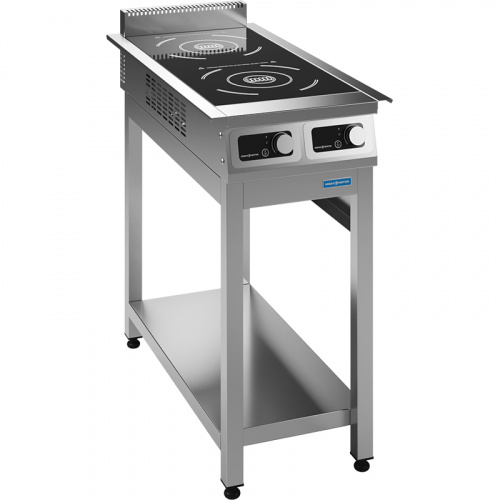 Плита индукционная электрическая относится к торговой марке «Новая энергия» предназначена для тепловой обработки полуфабрикатов в специально разработанных для индукционных плит функциональных емкостях (варки, жарки, тушения и пассировки) на предприятиях общественного питания. Имеет 2 конфорки, с общей потребляемой мощностью - 7кВт. Допустимая максимальная распределённая нагрузка на конфорку 50кг. Полезный диаметр посуды не менее 12см. Время закипания 1л воды примерно 2 минуты. Плита оснащена регулируемыми по высоте опорами.