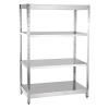Допустимая нагрузка на каждую полку 50 кг. Регулируемые по высоте ножки. Высоту ячеек между полками потребитель выставляет по желанию. Все элементы изготовлены из высококачественной нержавеющей стали.