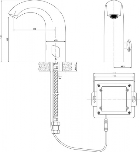 Смеситель Lemark Project LM 4656CE предназначен для монтажа в жилых домах и общественных помещениях. Изделие выполнено в стиле хай-тек из высококачественной латуни с хромовым покрытием, обеспечивающим устойчивость к механическим воздействиям. Кран быстро фиксируется на раковине в одно отверстие. Клапан смешивания горячей и холодной воды с возможностью регулировки размещается под столешницей. Кран включится, если поднести руки к изливу, а через 90 секунд подача воды прекратится автоматически. Устройство снабжено антивандальным аэратором, который откручивается только гаечным ключом. Он насыщает воду воздухом для создания струи, комфортной для гигиенических процедур, и сокращения расхода ценного ресурса. Комплектуется блоком для четырех элементов питания типа АА, от которых может функционировать фотоэлемент.