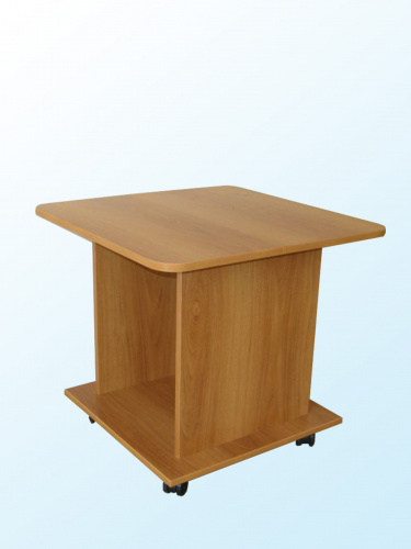 изготовлен из ЛДСП, торцы облицованы кромкой ПВХ 2 мм. Стол снабжен колесными опорами