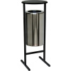 Мобильная уличная урна серии "СтритЛайн". В основании имеются отверстия для анкерного крепления к полу.Бак выполнен из зеркальной нержавеющей стали Снабжена фиксатором для бака. Цвет каркаса - черный, цвет бака - хром